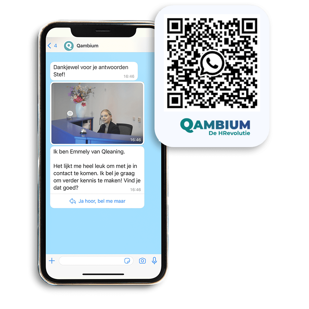 Sollicitanten stromen in via een QR Code, een Whatsapp button op de website of in combinatie met Social Media Campagnes